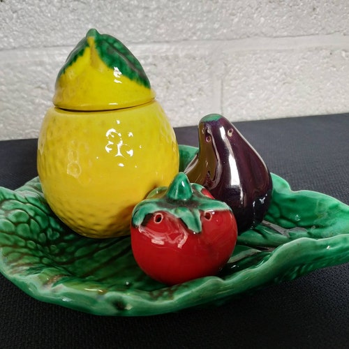 Vintage Vallauris Barbotine Condiment Set - ShopCurious